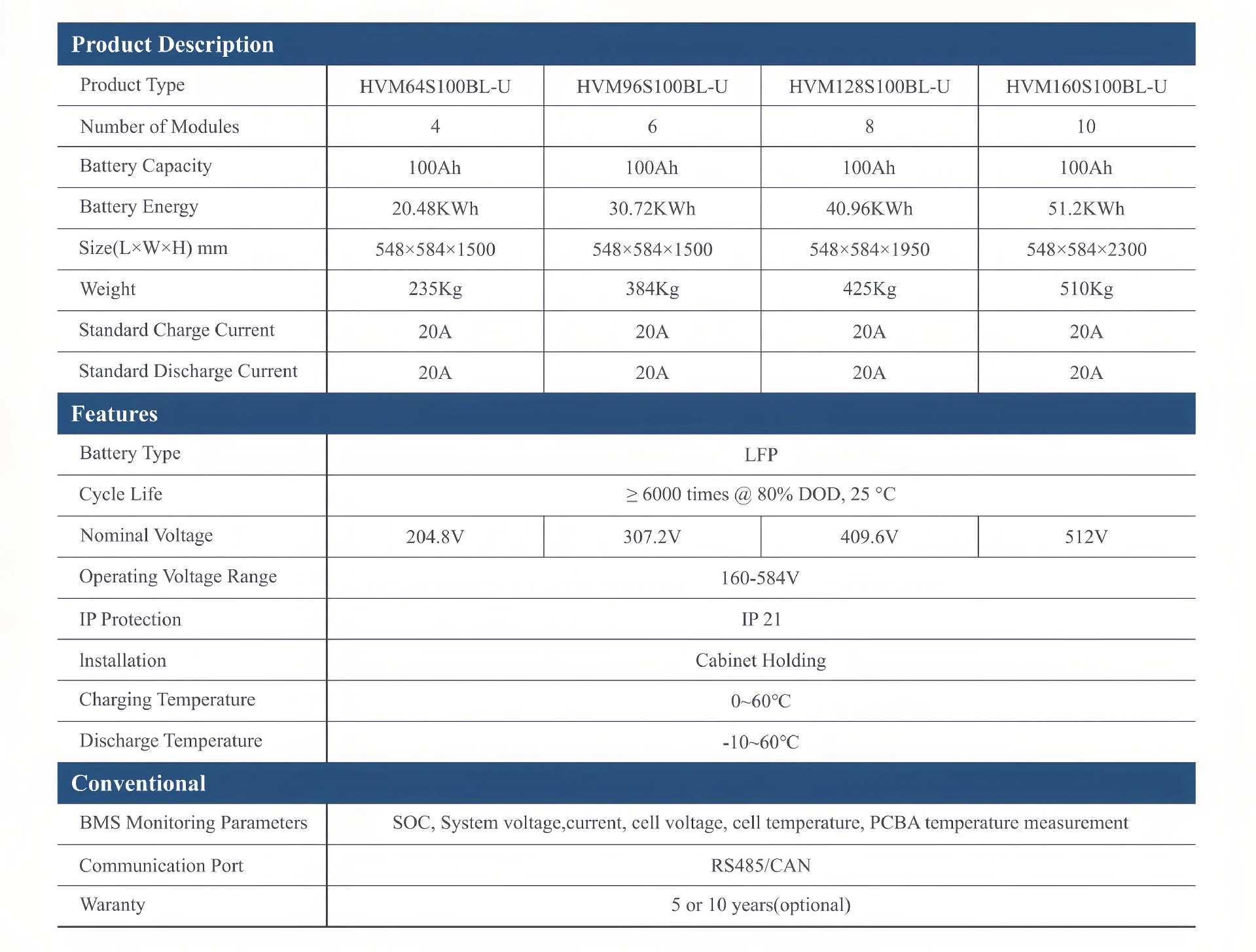 Gran capacidad, alta eficiencia de carga y descarga, más de 6000 ciclos de vida